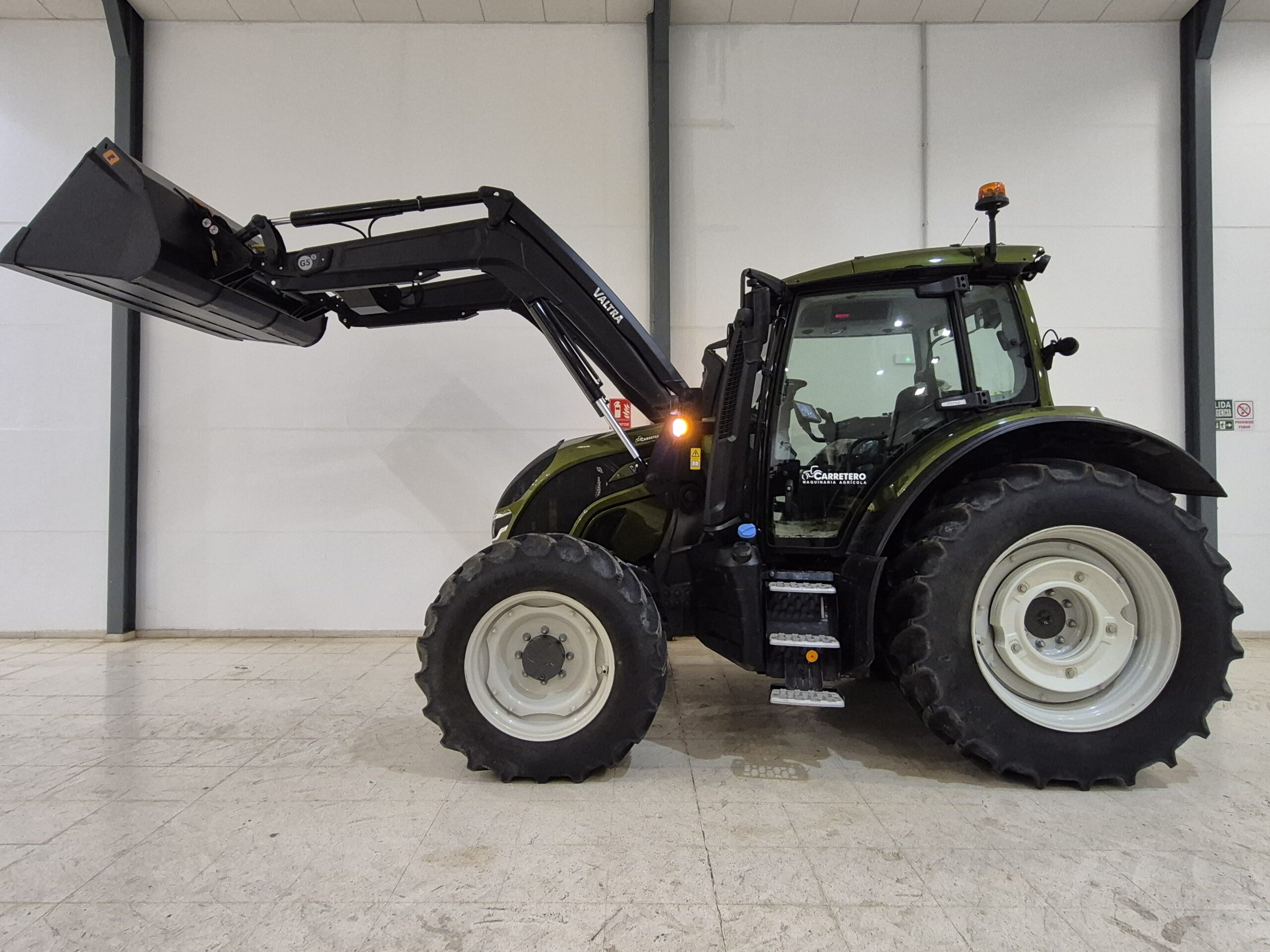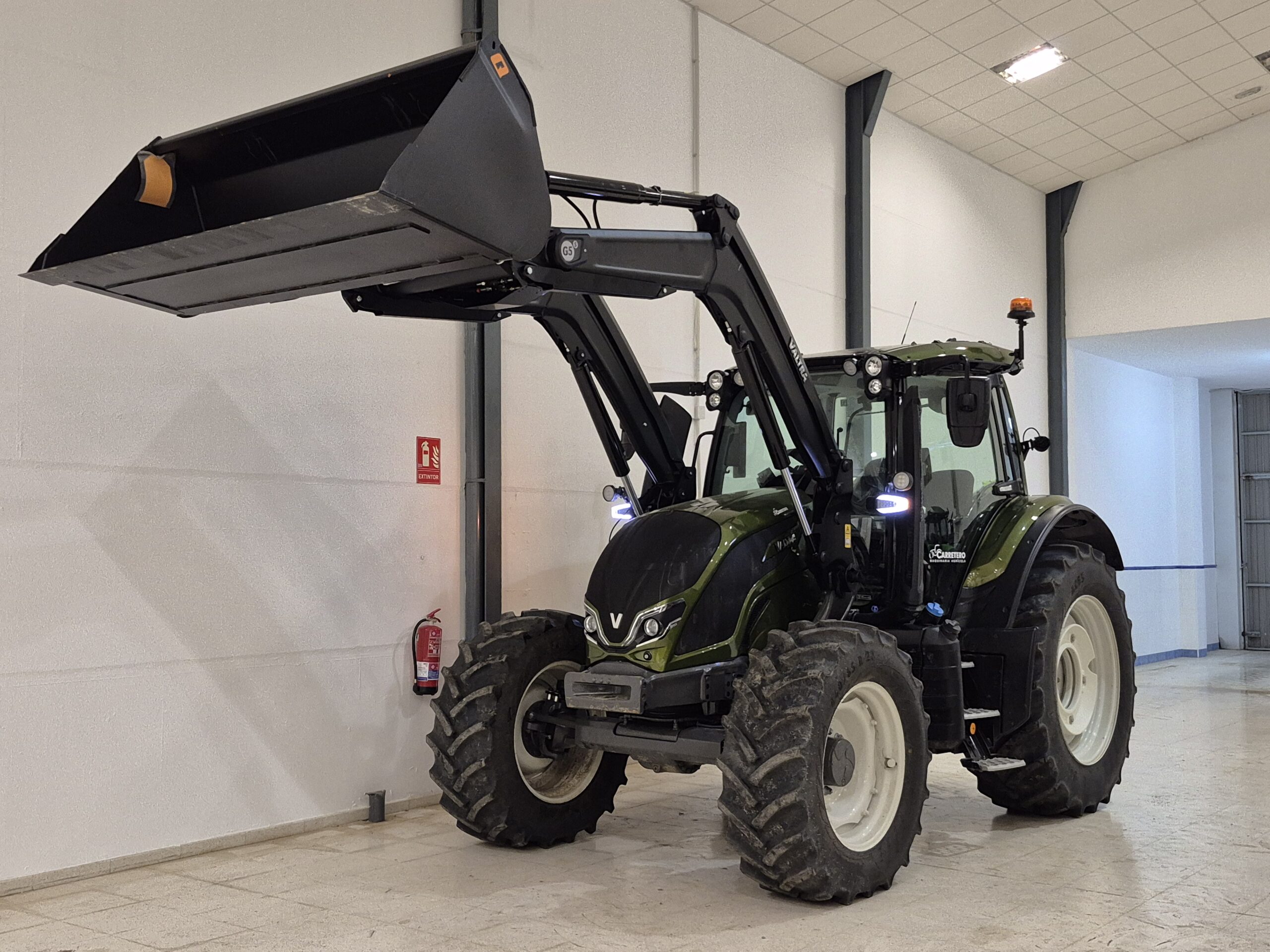 26/01/2026OPORTUNIDAD: Estado excepcional, prácticamente nuevo. Equipado con terminal de 12 pulgadas para toda configuración personal, ajuste de caudal hidráulico, etc. y joystick eléctrico para manejo de hidráulicos, inversor electrohidráulico con parking, climatización, asiento suspensión neumática plus con calefacción y giro. También dispone de contrapesos delanteros de 10+40kgs. Bomba hidráulica de 160 l/min con refrigerador de aceite. Incluidos guardabarros delanteros pivotantes. Iluminación completa LED, freno de motor incorporado. Sistema de conducción reversible (TwinTrack). Giro rápido y regulable a cualquier situación (QuickSteer).